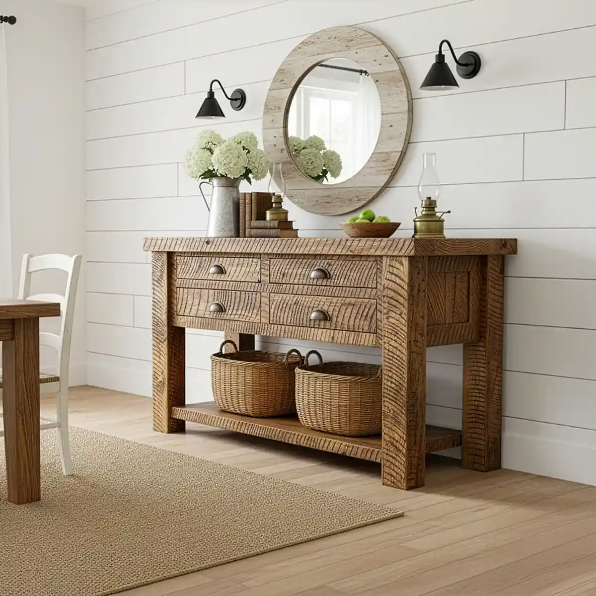 Step closer. This isn’t cold wood and hardware; it’s a piece with a heartbeat, infused with the care and intention of human hands. This sideboard table is an ode to authenticity, meticulously handcrafted from solid oak, a material revered for its strength and timeless beauty.