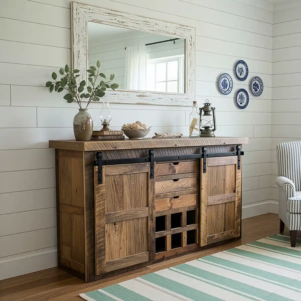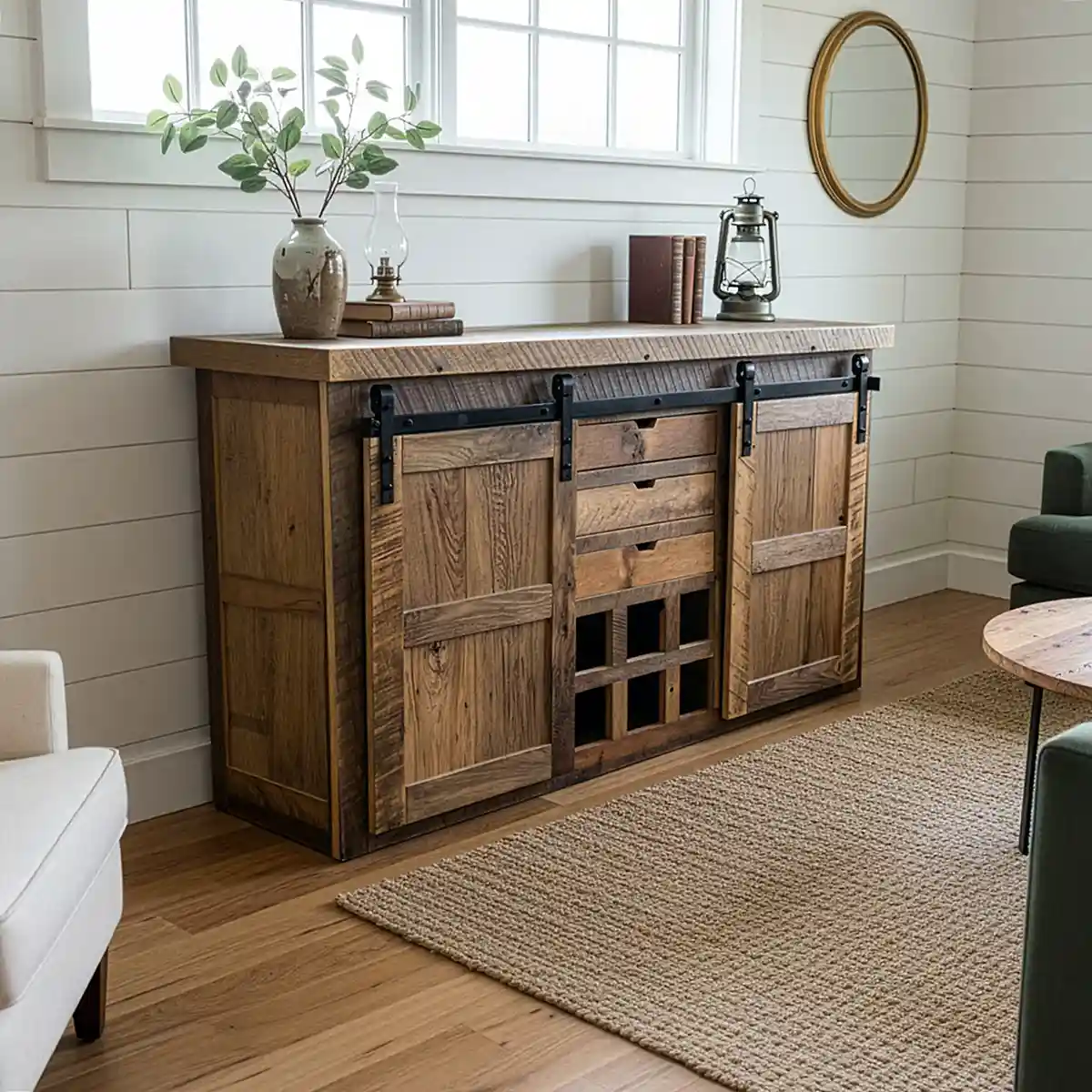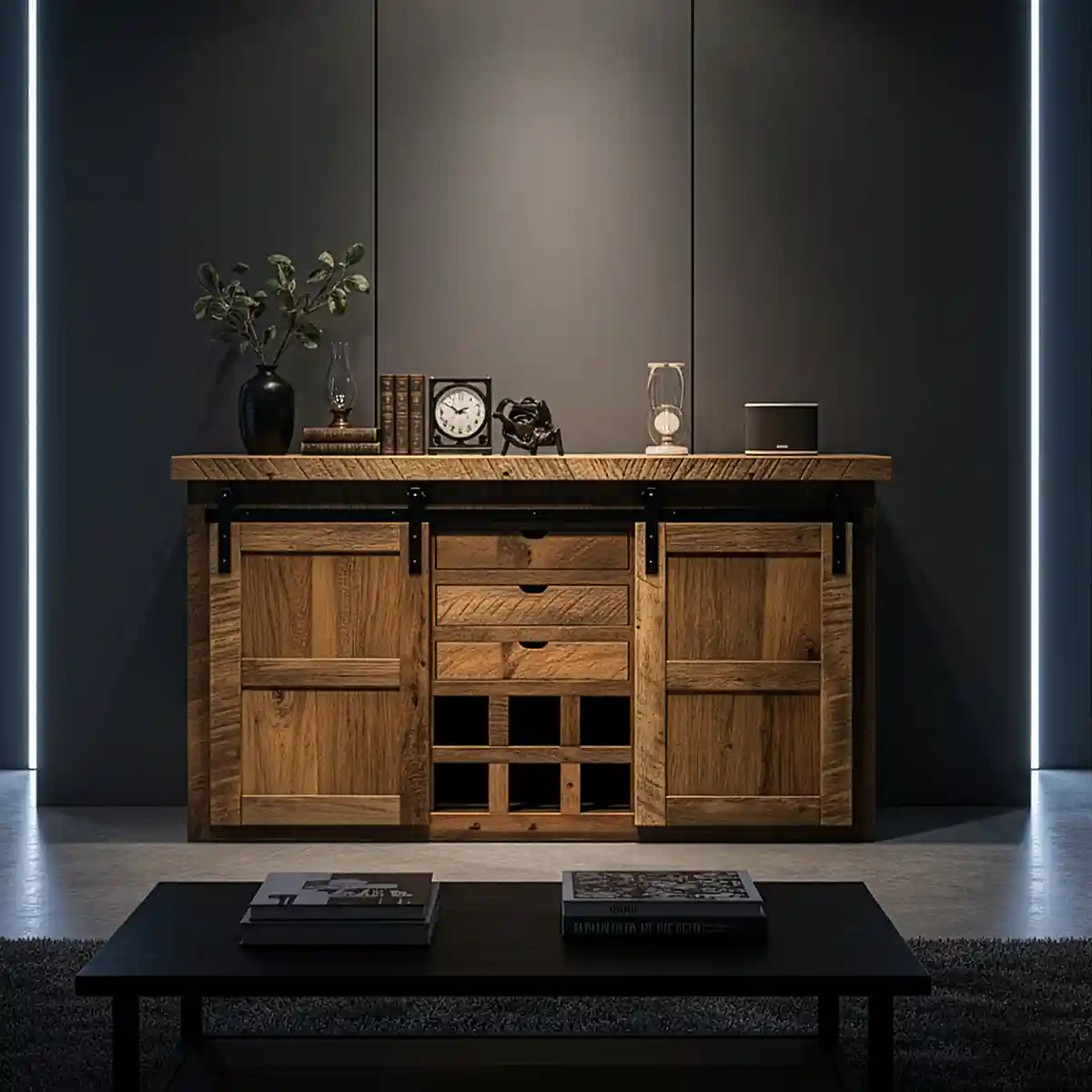 Then, we honored its journey. The solid barn doors glide on high-end hardware, blending its rustic past with a smooth, modern presence. The soft-close drawer slides are a quiet promise of quality, a modern comfort that complements the wood’s profound history.