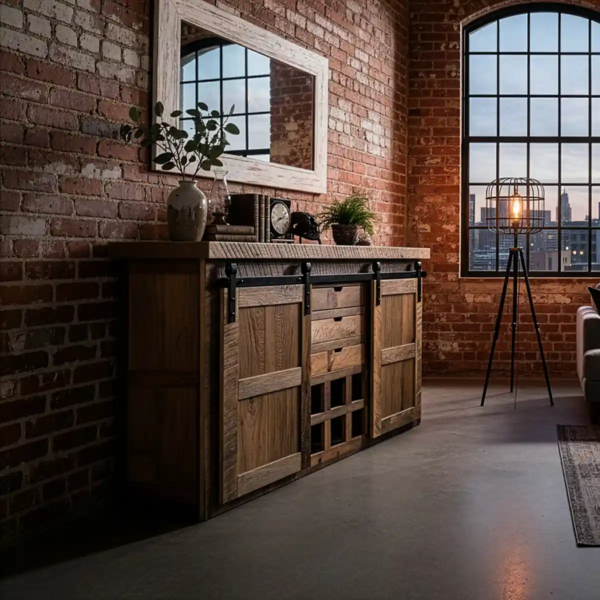 This buffet is handcrafted from timber that began its life as an American barn 100 to 200 years ago. Imagine the world it has seen. This wood has a soul, a character, a resilience earned through time that new materials can only mimic.