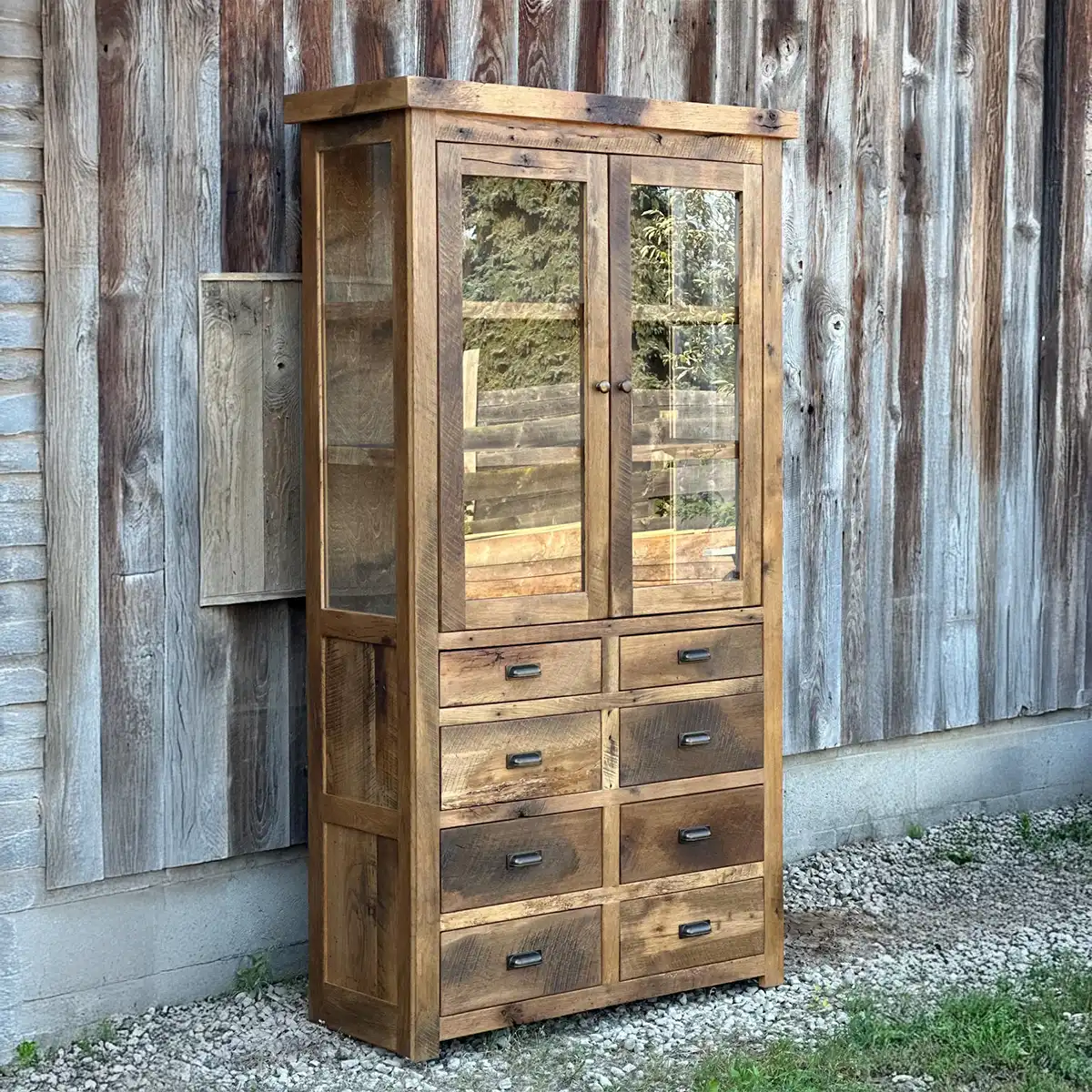 Reclaimed Barnwood Cabinet: 45″ Handcrafted Storage – Glass Doors – Ready To Ship!